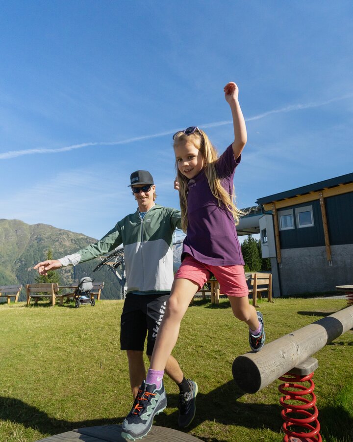 Die großzügig angelegte Erlebniswelt für Kinder wurde individuell geplant und umgesetzt und fügt sich harmonisch in das Gelände der Medrigalm ein. Hochwertige, natürliche Materialien, liebevoll gestaltete Spielstationen sowie spannende Wasser-, Kletter- und Bewegungselemente fördern spielerisch Motorik, Kreativität und Entdeckerfreude.