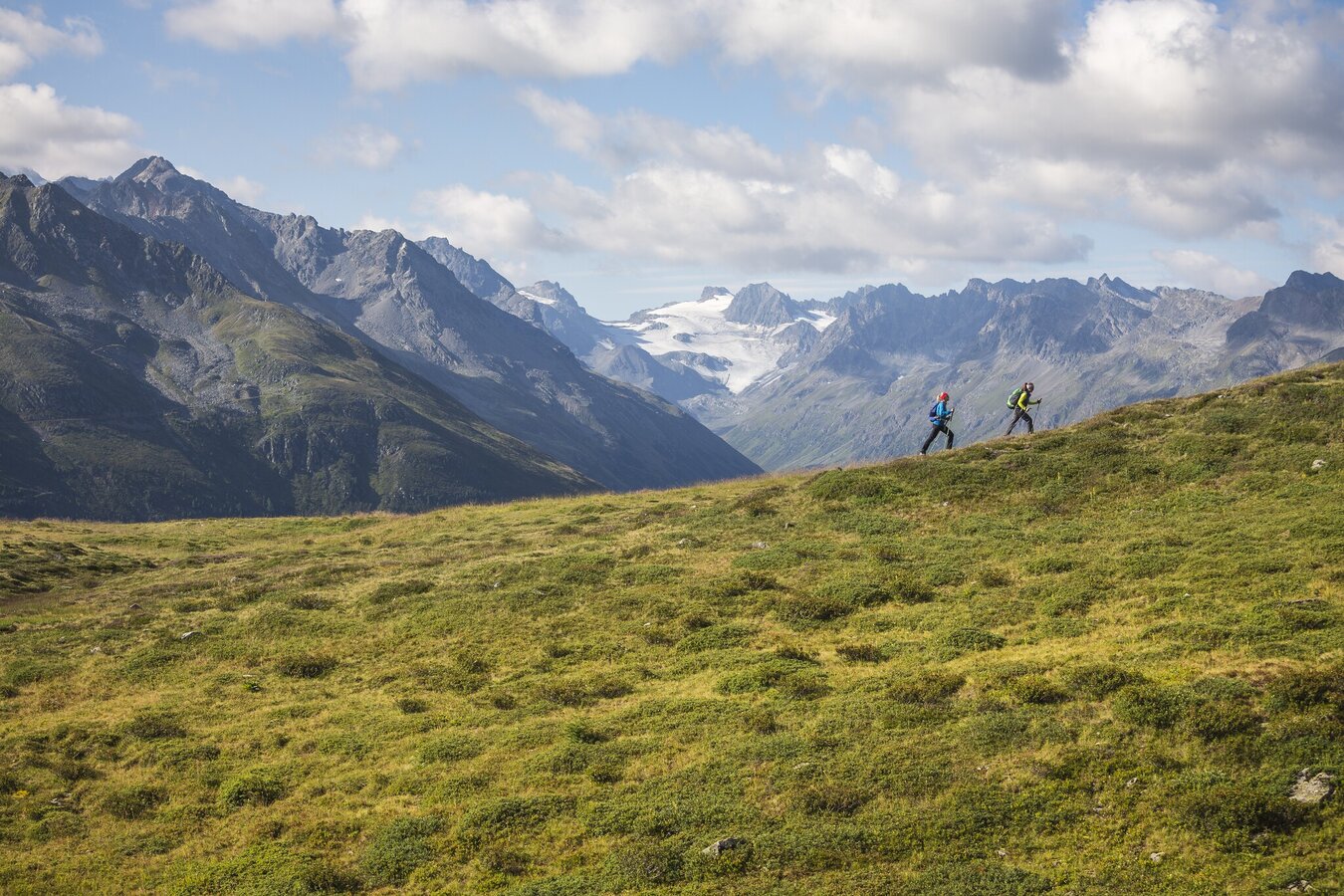 Mit 3,5 Stunden Gehzeit ist Etappe 5 die gemütlichste unter den 9 Etappen. Dennoch gilt es 850 Höhenmeter zu überwinden, bevor man das Etappenziel, die Friedrichshafener Hütte, erreicht. Vom Dorfzentrum Galtür geht es Richtung Ortsteil Außertschafein auf 1.560 m und von hier folgt man der Beschilderung Richtung Friedrichshafener Hütte. Recht anspruchsvoll wurde dieser Weg vom Amt der Tiroler Wildbach- und Lawinenverbauung angelegt. An zwei Stationen sind Informationstafeln angebracht, welche über Vegetation, Forstwirtschaft sowie Verbauungsmaßnahmen informieren. Ab diesem Abschnitt befindet man sich in dem Gebirge der Verwallgruppe von der man einen Panoramablick auf die schon begangene Samnaungruppe auf der gegenüberliegenden Talseite erfolgreich genießen kann. Nachdem man den Grat des Adamsbergs auf ca. 2.330 m passiert hat, führt der Weg leicht bergab über die Flanke der Hohen Köpfe bis zur Friedrichshafener Hütte, die auf 2.138 m liegt.