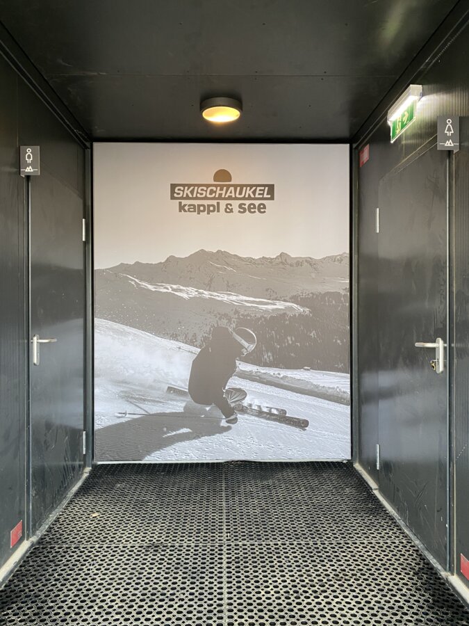 Eine weitere Neuerung, die beim Einsteigsbereich auffält. Gleich beim Eingang fällt der Blick auf die neu installierte LED-Tafel. Diese hochmoderne Anzeigefläche ist mehr als nur ein Blickfang – sie ist eine weitere Informationsquelle für den gesamten Skitag.