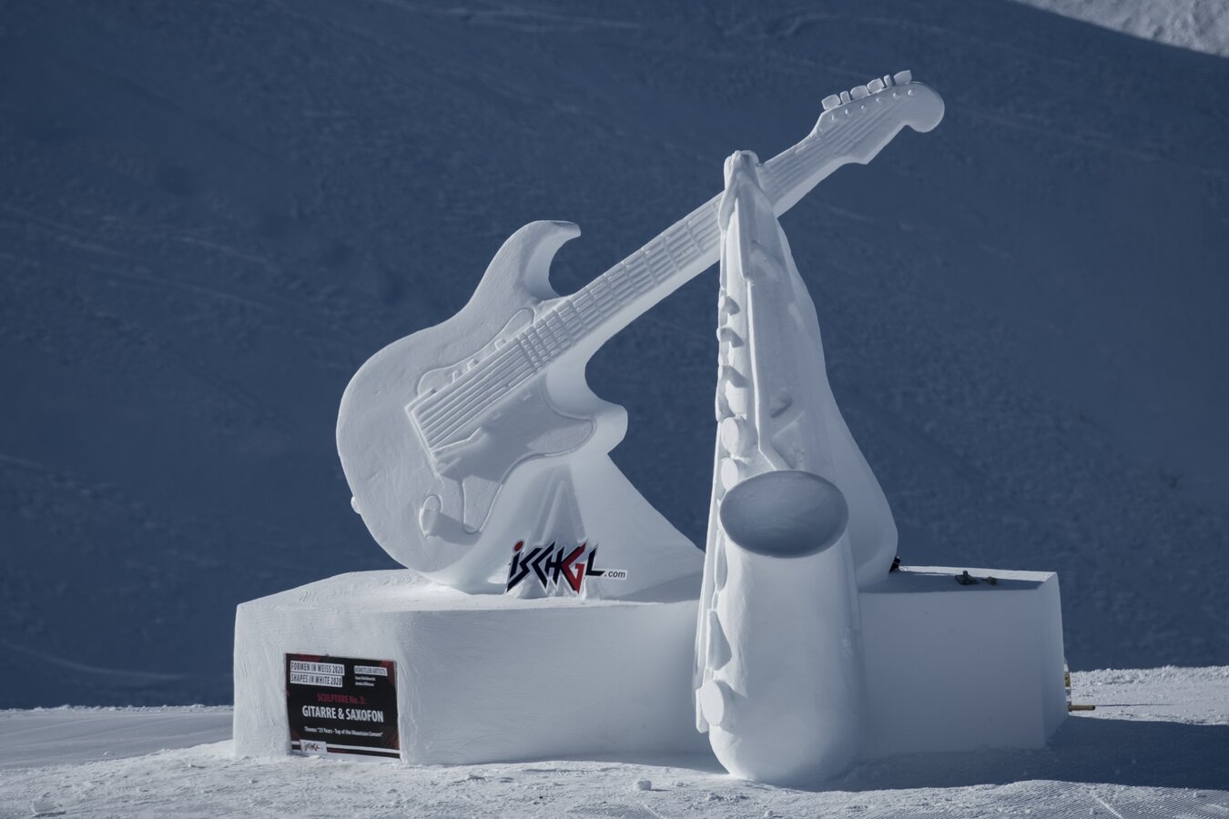 Zu sehen sind unter anderem Helene Fischer, Bon Jovi, Pink oder Elton John. Allen voran steht die Skulptur „Gitarre + Saxofon“, welche von den Bildhauern Ivan Holzknecht und Armin Rifesser aus Italien geschaffen wurde. Diese Skulptur hat die Jury am meisten beeindruckt und hat es auf Platz eins geschafft. Auf dem zweiten Platz landete das Team Ivo Piazza und Reiner Kasslatter aus Italien mit Superstar „Tina Turner“. Den dritten Platz konnten sich Ralf Rosa und Peter Fechtig aus Deutschland mit „Deep Purple“ sichern. „Wie jedes Jahr sind wir von der kreativen Leistung der Teilnehmer und der meisterhaften Umsetzung tief beeindruckt“ freut sich Andreas Steibl von der Ischgler Jury. „Die Künstler haben auch in diesem Jahr wieder eins oben draufgesetzt und uns die Wahl dadurch sehr schwer gemacht.“