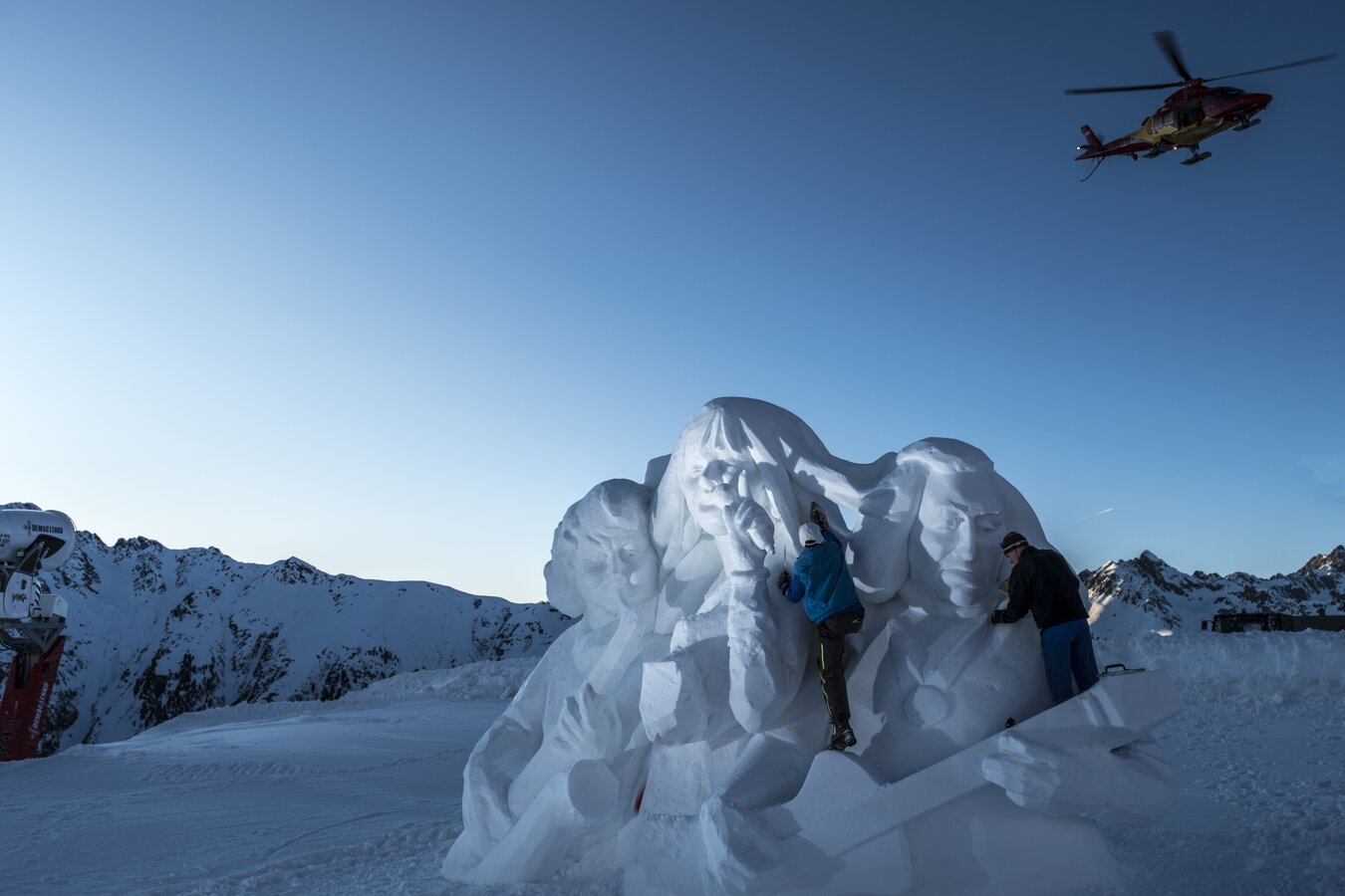 Zahlreiche internationale Musikstars auf einen Streich? Wer glaubt, dass es das nicht gibt, der sollte am Pistenrand der Silvretta Arena gut die Augen aufmachen. Denn beim 27. Schneeskulpturen-Wettbewerb „Formen in Weiß“ haben zehn Künstlerpaare aus vier Ländern vom 13. bis 17. Januar 2020 das Skigebiet von Ischgl in eine eindrucksvolle Open-Air-Galerie aus Schnee und Eis verwandelt. Getreu dem Motto „25 Years - Top of the Mountain Concerts“ erinnern elf bis zu zehn Meter hohe Schneeskulpturen an die legendärsten Ischgl-Konzerte der vergangenen 25 Jahre.