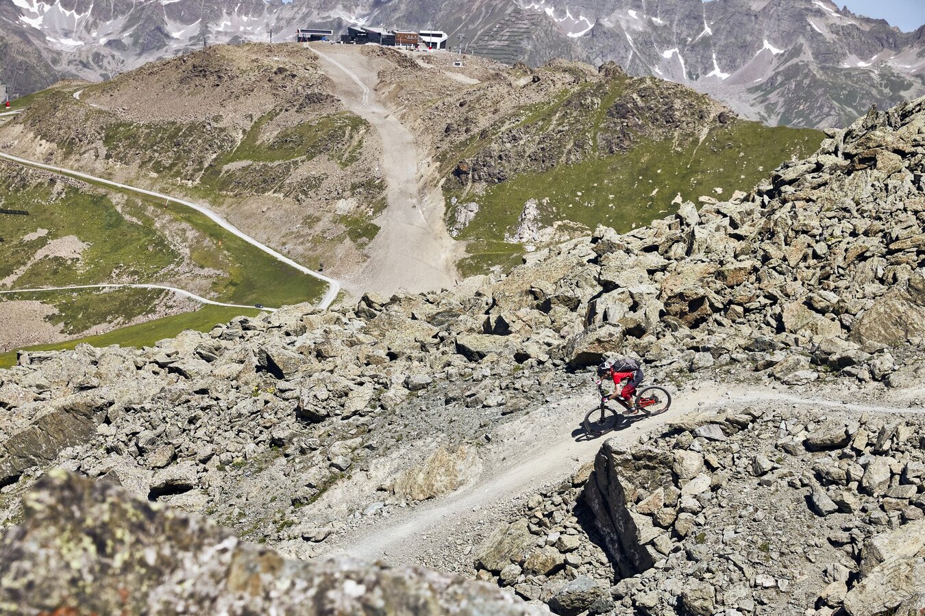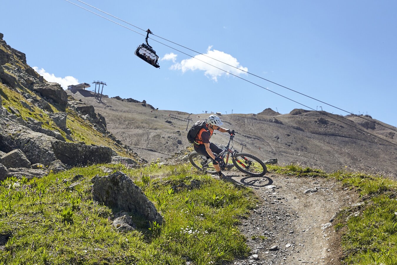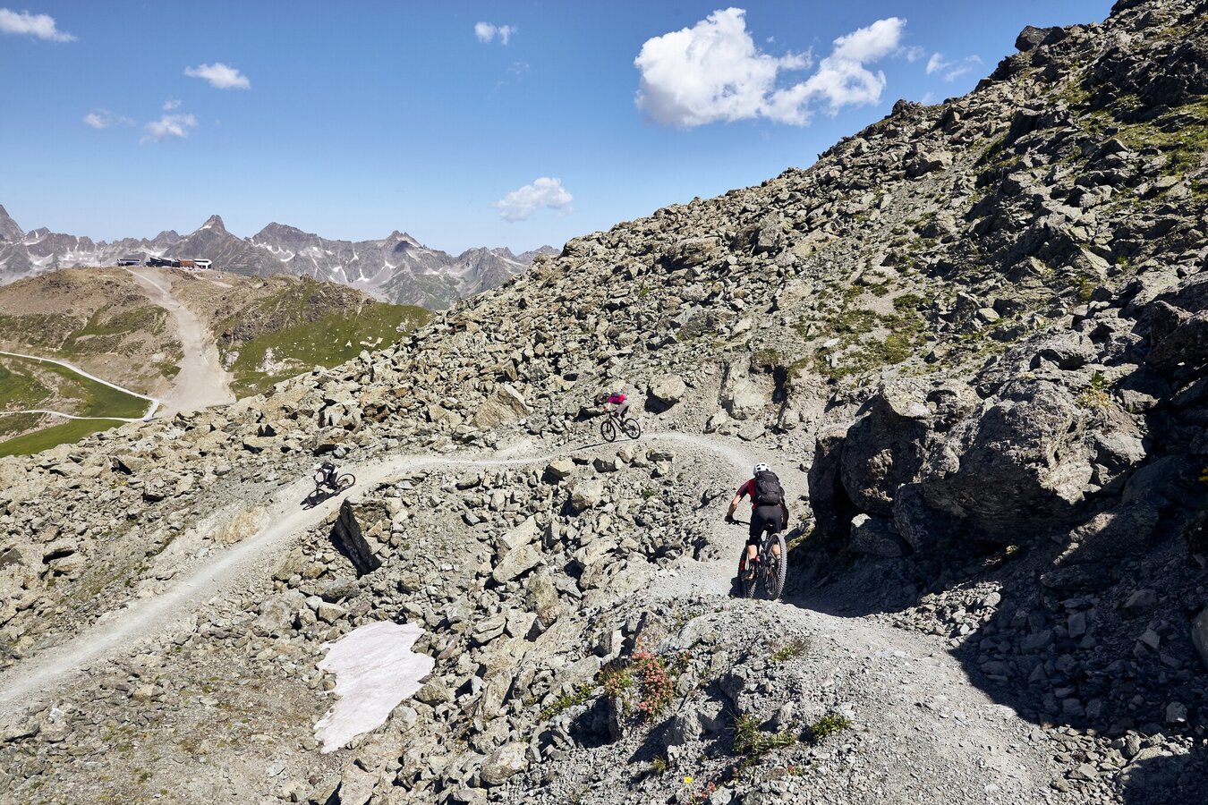 Directly at the exit of the Flimjochbahn, the trail begins, winding its way down to Idalp, visible from the start. The route is noted for its numerous berms and specially designed steep turns, catering to all levels of riders. While beginners can ideally enhance their riding skills here, the Singletrail Flimjoch also offers ample opportunity for experienced cyclists to increase their speed. The jumps are challenging, yet cautious riders can simply roll over them. A breathtaking panorama adds to the allure of this route. Upon arriving at Idalp, it's possible to extend the ride by connecting with the Paznauner Taja Trail or to cycle back to the starting point via the signposted connecting route 7090.