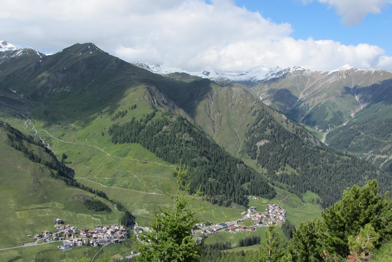 The hike begins at the guest information center, following the village street. After passing Hotel Post, turn left, and then take another left at Hotel Bündnerhof, crossing the bridge over the Maisasbach. Immediately afterward, the gentle ascent through the forest begins, leading to the Motta Saltuorn sledding hut and further to the viewpoint overlooking Val Motnaida, where you can see Samnaun Dorf and Piz Ot. Passing by the impressive avalanche barriers, the view opens up over the entire Samnaun Valley. On the opposite side of the valley, you can see the Silvretta Arena with the imposing peaks of Flimspitz and Bürkelkopf from a distance. After a slightly exposed passage through Val da Chierns—this path is also known as the "Shepherd's Trail" among the locals—the route continues comfortably via Motta Foppazins to Piz Mezdi, where the view of Val Sampuoir unfolds. From the border ridge between the municipalities of Samnaun and Valsot, the path descends to Fuorcla Curschiglias. From here, you can choose to descend toward Samnaun-Compatsch either via the forest road or directly down over Magnüda.