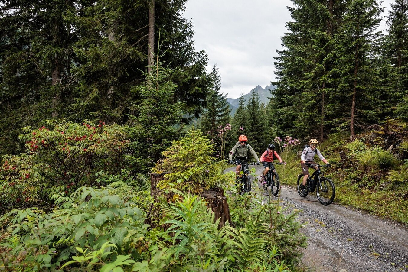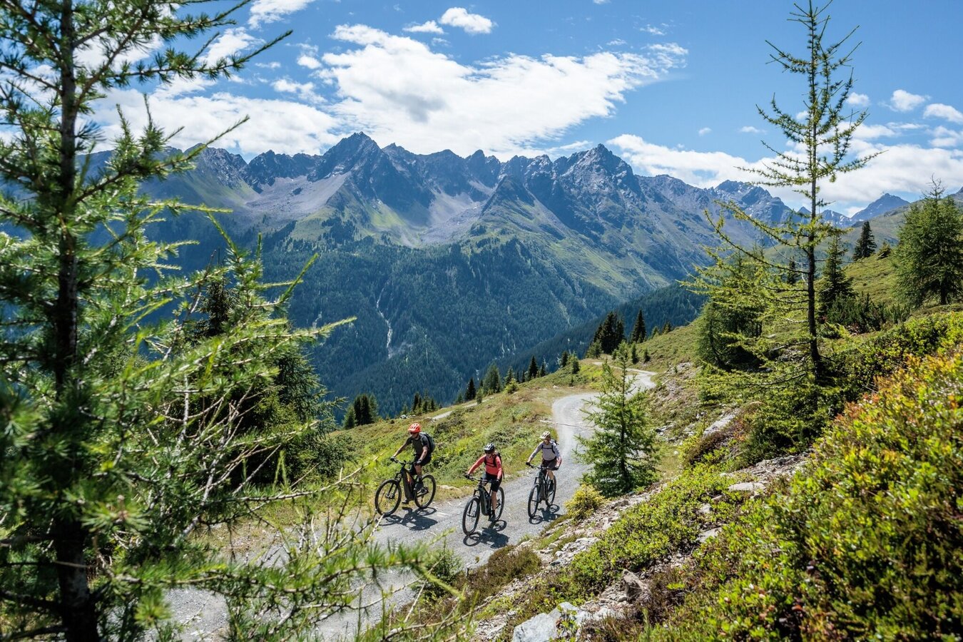 Culinary treats and a sun terrace await at the Idalp. As part of the Ironbike Festival, the Alpenhaus Trophy route invites bikers to compete by floodlight. This route covers approx. 1,000 m of altitude along a steadily climbing asphalt road. The route heads off towards the Fimbatal valley from the outset, running uphill to the middle station of the Fimbabahn or Silvrettabahn cable car. It is also worth taking a detour to the Schwarzwassersee and Pardatscher-See lakes. Form here, the road weaves its way up towards the Pardatschgratbahn cable car. The views down into the original Fimbatal valley and to the Gamspleis peak become increasingly more impressive. Once at the Idalp, the sun terrace is the perfect place to stop off for refreshments. On the route back to Ischgl, you can either take the road or the lively Paznauner Taja Trail (page 46) down towards the Fimbatal valley. Another option is the signposted connecting route 7090 up to the starting point at the Flimjochbahn mountain station.