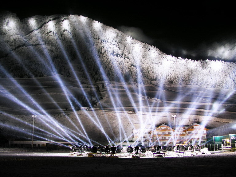 With the ski opening on 28 November 2003, Ischgl will once again become the winter sports Mecca of the Alps. On Saturday, 29 November from 6.00 pm, the German world-class light designer Gert Hof will bathe the whole of Ischgl in light: to the classical sounds of "Amici forever", the square in front of the Silvretta cable car, Ischgl hotels or even individual cable car gondolas will show a completely different, new face before the eyes of Ischgl's guests thanks to Hof's spectacular light and laser effects.
