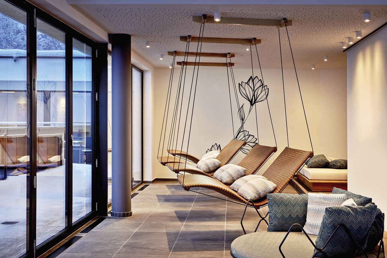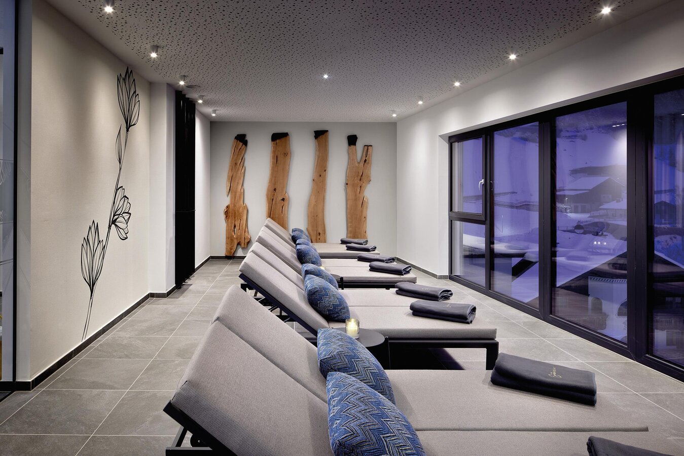 Of course, we also take care of your well-being between sauna sessions at our **** Superior Wellnesshotel in Paznauntal. Enjoy delicious snacks, fresh fruit and drinks at the snack bar and loll on our relaxation loungers in the Outdoor Living Room!