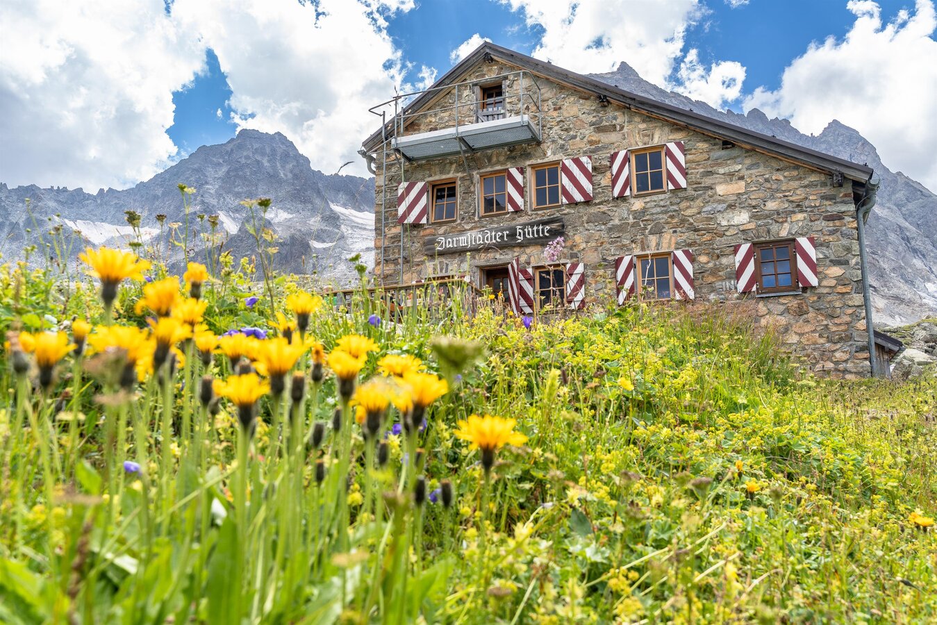 Located in an impressive high mountain basin to the north of Ischgl is Darmstädter Hütte, at 2384 m. The lodge is indeed easy to get to from St. Anton am Arlberg, but Darmstädter Hütte is a worthwhile destination for expert hikers coming from Iscghl too. In around four to five hours you hike from Ischgl through the Madleintal valley and across the Doppelseescharte, to Darmstädter Hütte in the Verwall area. The section through the tranquil Madleintal valley is especially charming, since lots of sheep spend the summer grazing up here and the crystal-clear Lake Madleinsee invites you to take a breather. From Darmstädter Hütte there is a superb view to some of the summits of the Verwall group, for instance the Küchlspitze at 3147 m and the Saumspitze at 3039 m. There is also a climbing garden very close to the lodge, for all those of you who have enough energy left over after such an extensive tour.