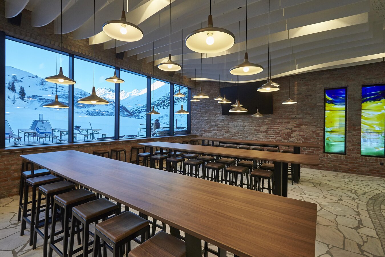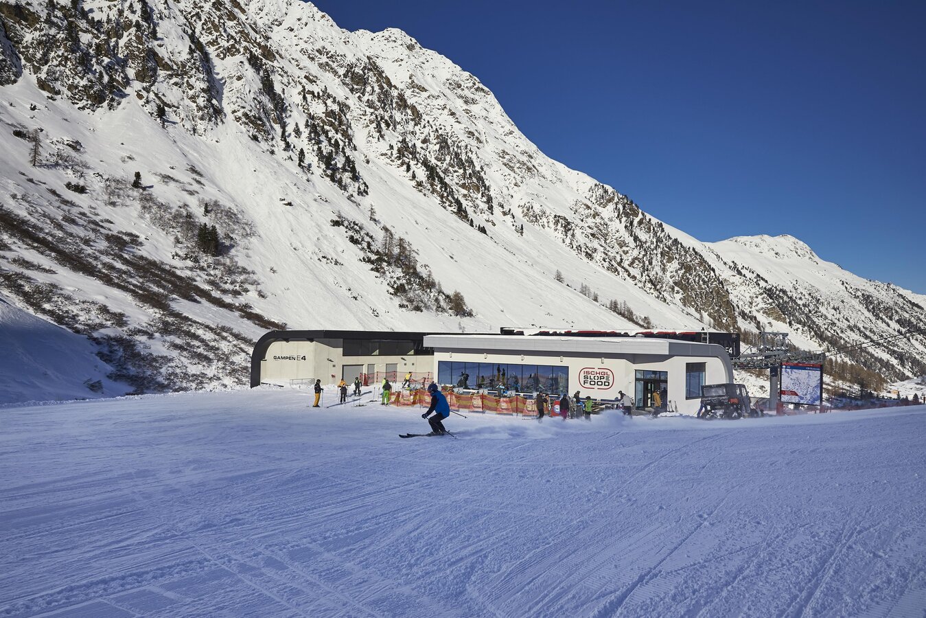 It’s located right at the valley station of the new Gampenbahn (E4) chair lift and it’s the perfect spot for a little snack between meals. And for all those who would like to eat in style and then quickly head back onto the slopes of the ski resort.