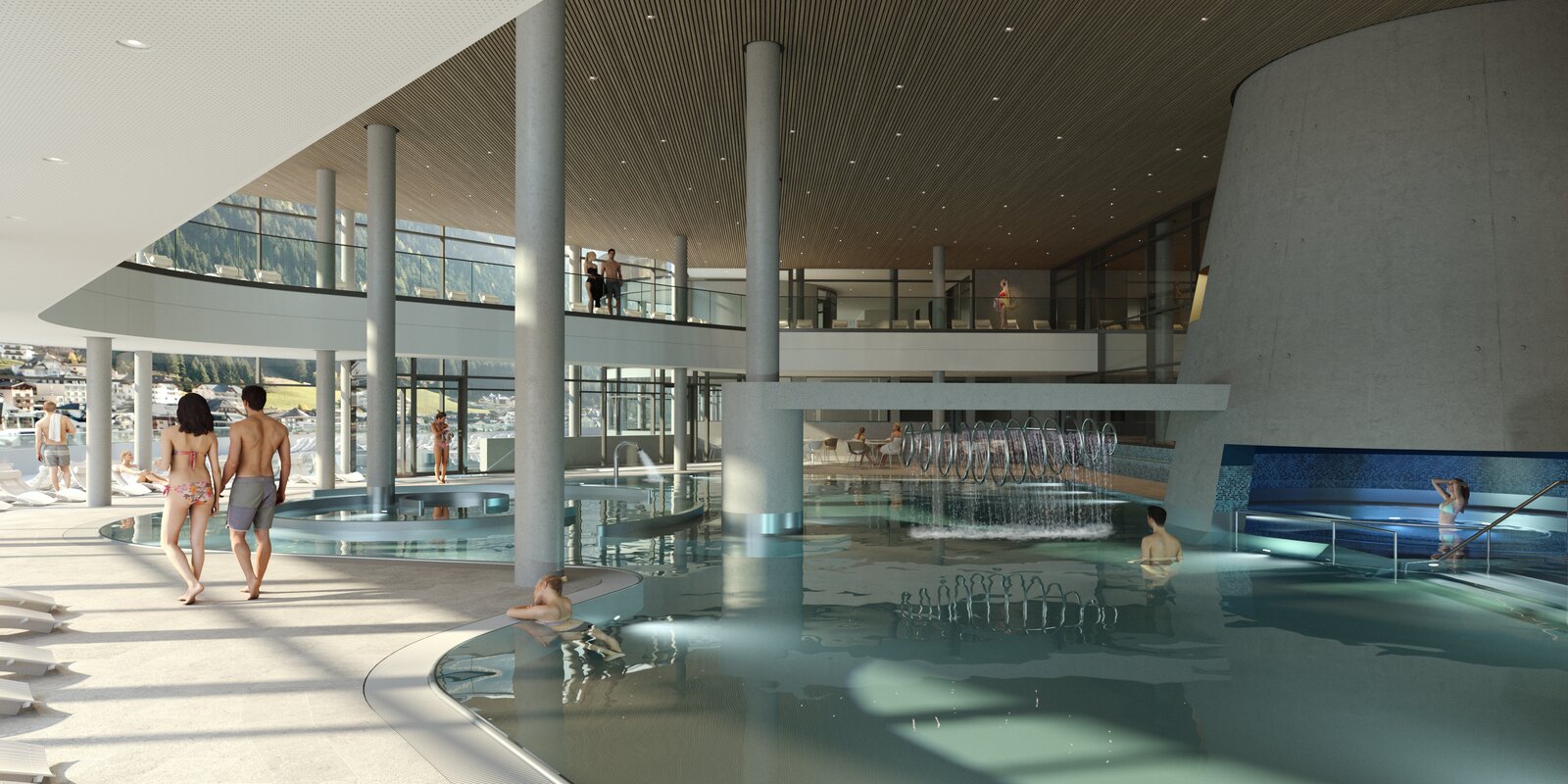 Silvretta Spa: Impressive outside and inside - With the new Silvretta Spa the Silvrettaseilbahn AG is creating an architectural milestone and upgrading the leisure facilities in the entire Paznaun region. The most expensive single investment by Silvrettaseilbahn AG, at around 70 million, is something to behold. Eight different pools with a total of more than 1,000 square metres of water surface are spread over four floors in two buildings, including a 25m indoor sports pool, an outdoor swimming pool, a spacious adventure pool, a children's pools and a brine grotto. More than 1,500 square metres of sauna area with customs house sauna, alpine herbal sauna, event sauna, Swiss stone pine sauna and the centrepiece - the panorama sauna - are unparalleled. The spa indulgesits guests with culinary delights in a trattoria with Italian delicacies, in the spa restaurant and in the noble lounge with charcoal grill. In addition, a pool bar in the outdoor pool and an ice bar leave nothing to be desired. A high-end fitness studio with state-of-the-art training equipment, a physiotherapy practice with a health insurance contract, a range of health-promoting massages and an innovative cryogenic chamber ensure regeneration. Event facilities for up to 600 people are included. Highlight: the 1,300-square-metre ice skating rink with skating rink and a 250-metre-long, passable tunnel, which runs once around the entire outdoor area. Good to know: The Silvretta Spa relies on alternative energy sources with geothermal energy and green electricity. Further information: www.silvrettatherme.at