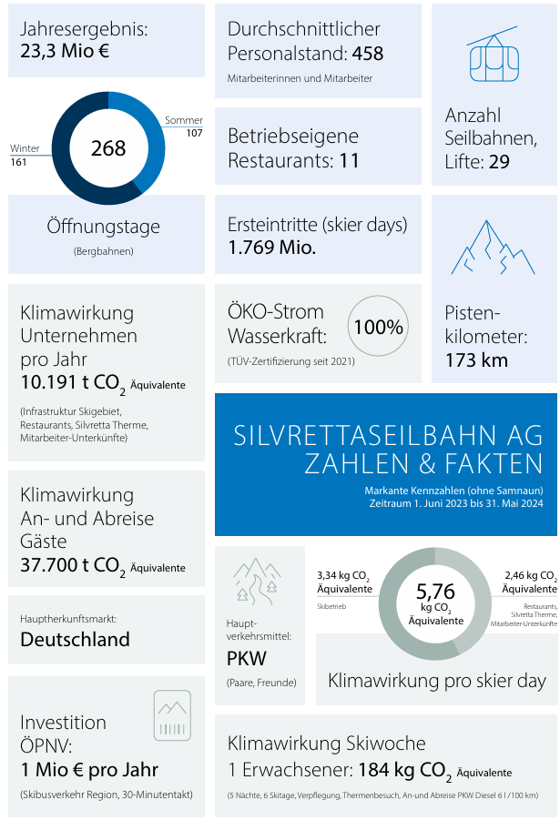 Silvrettaseilbahn AG places great importance on the efficient and responsible use of resources when it comes to technical snowmaking. Snow is produced exclusively with water and air - without any chemical additives. Modern, energy-efficient snow guns enable a drastic increase in the conversion rate of water to snow, especially in difficult conditions, which significantly reduces energy consumption.