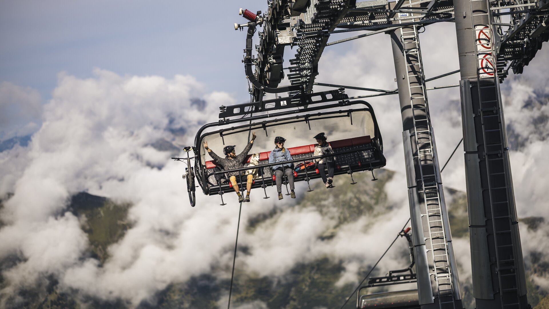 The detachable chair lift departs at 2,302 m above sea level (Idalp) and runs over 16 pillars to the Viderjoch, located at 2,756 m altitude. In winter, this facility is mainly used to support the Idjoch 8-person chair lift. The 87 chairs are equipped with comfortable seat covers, seat heating and weather protection bubbles. The facility has a total capacity of 3,200 m persons per hour. The Flimjochbahn operates from the mountain station, has a vertical rise of 454 m and a route distance of 1,797 m. Built in 2016, this lift facility boasts an average of 1,2 Mio. trips per winter. season. Bike transport capacity: 120 bikes per hour