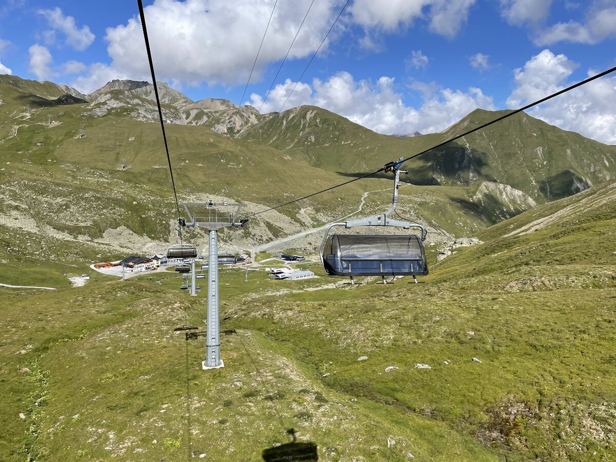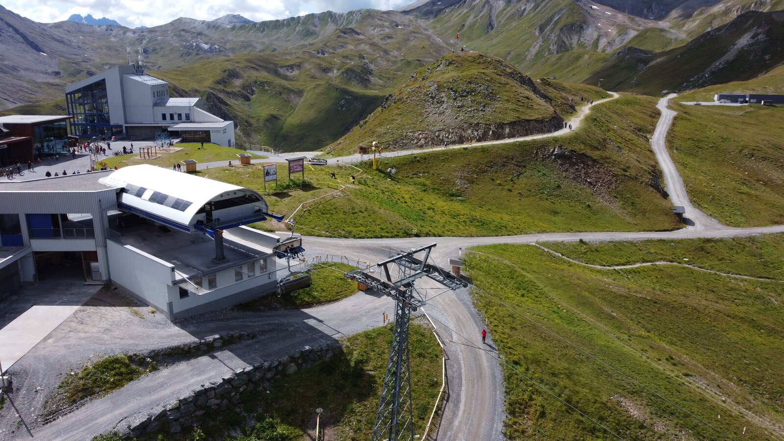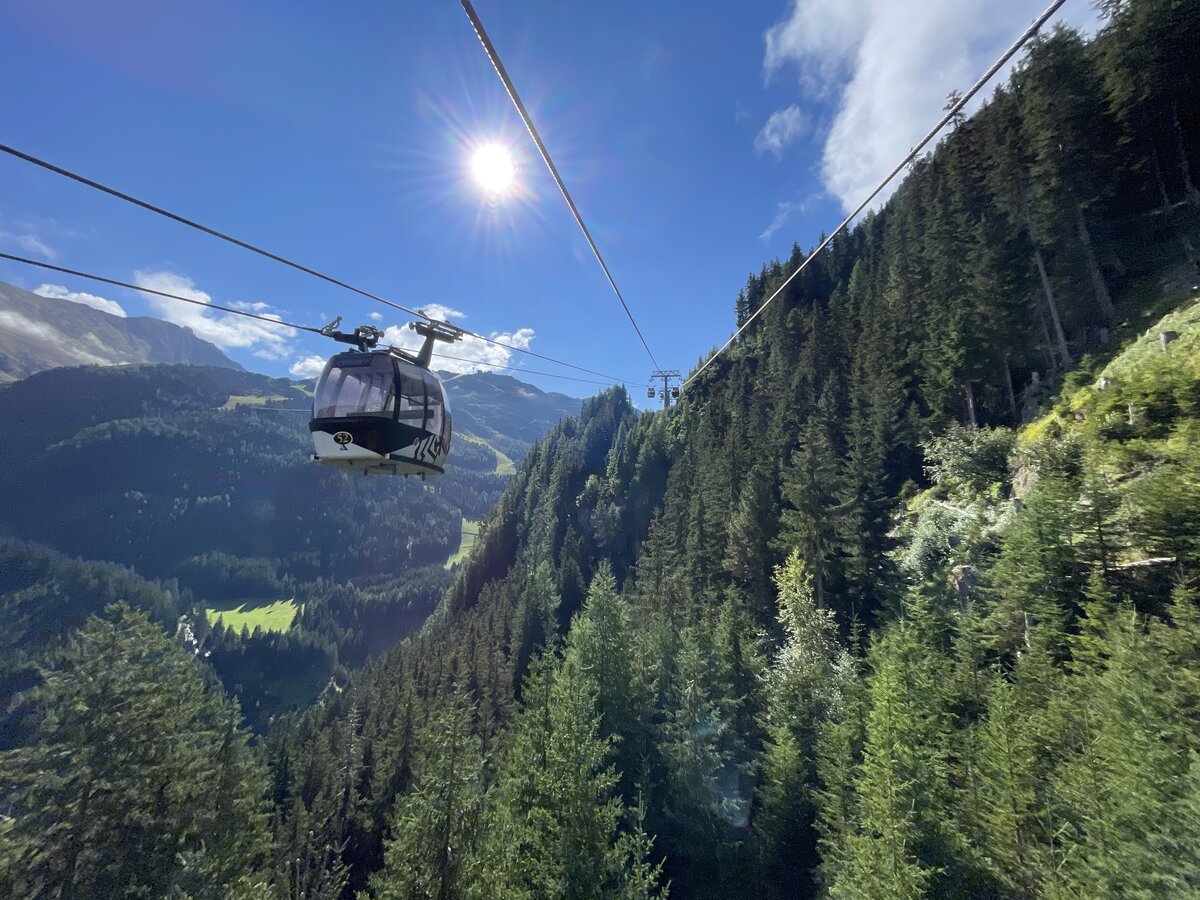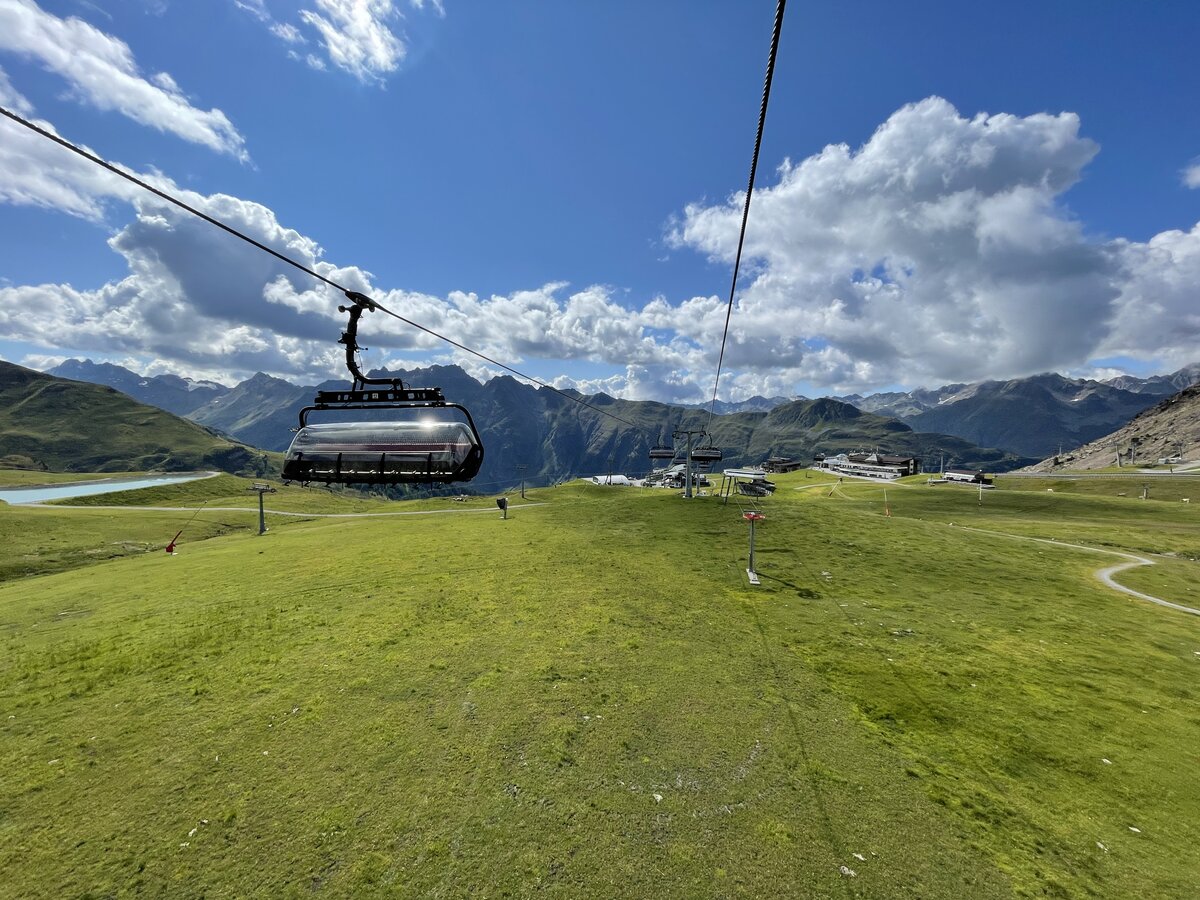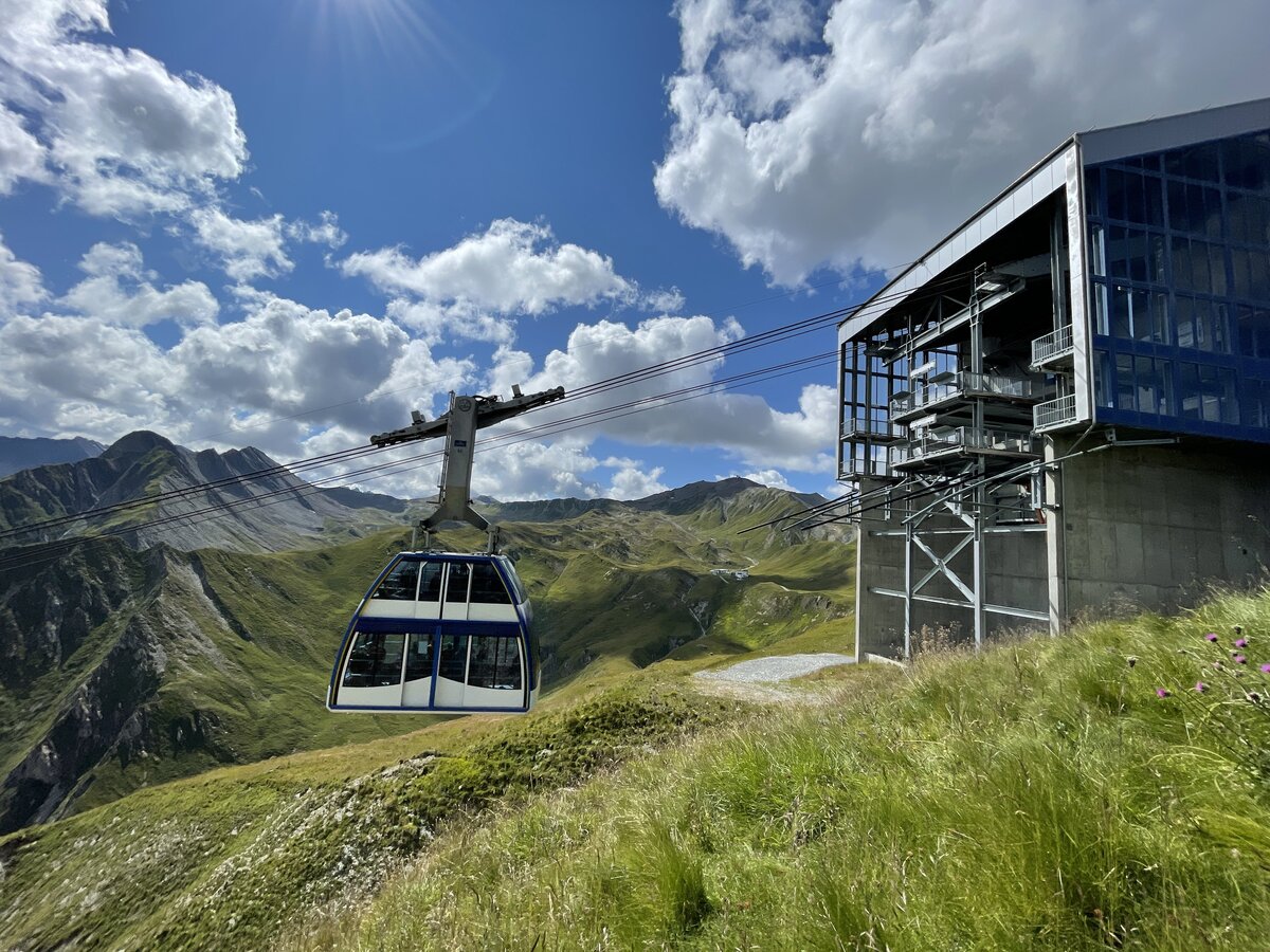 The Twinliner in Samnaun is one of the largest aerial cable cars in the Alps, featuring two double-decker gondolas with a total capacity of 180 passengers, with 110 passengers traveling in the upper and 70 passengers traveling in the lower gondola. The cableway runs with a max. ground clearance of 210 m over 3 pillars from Samnaun to Alp Trider Sattel. Built in 1995, the aerial cableway has a vertical rise of 722 m, a route distance of 2.300 m and a total capacity of 1.620 persons/hour. Maximum speed is 10 m/s, rope diameter is 64mm.