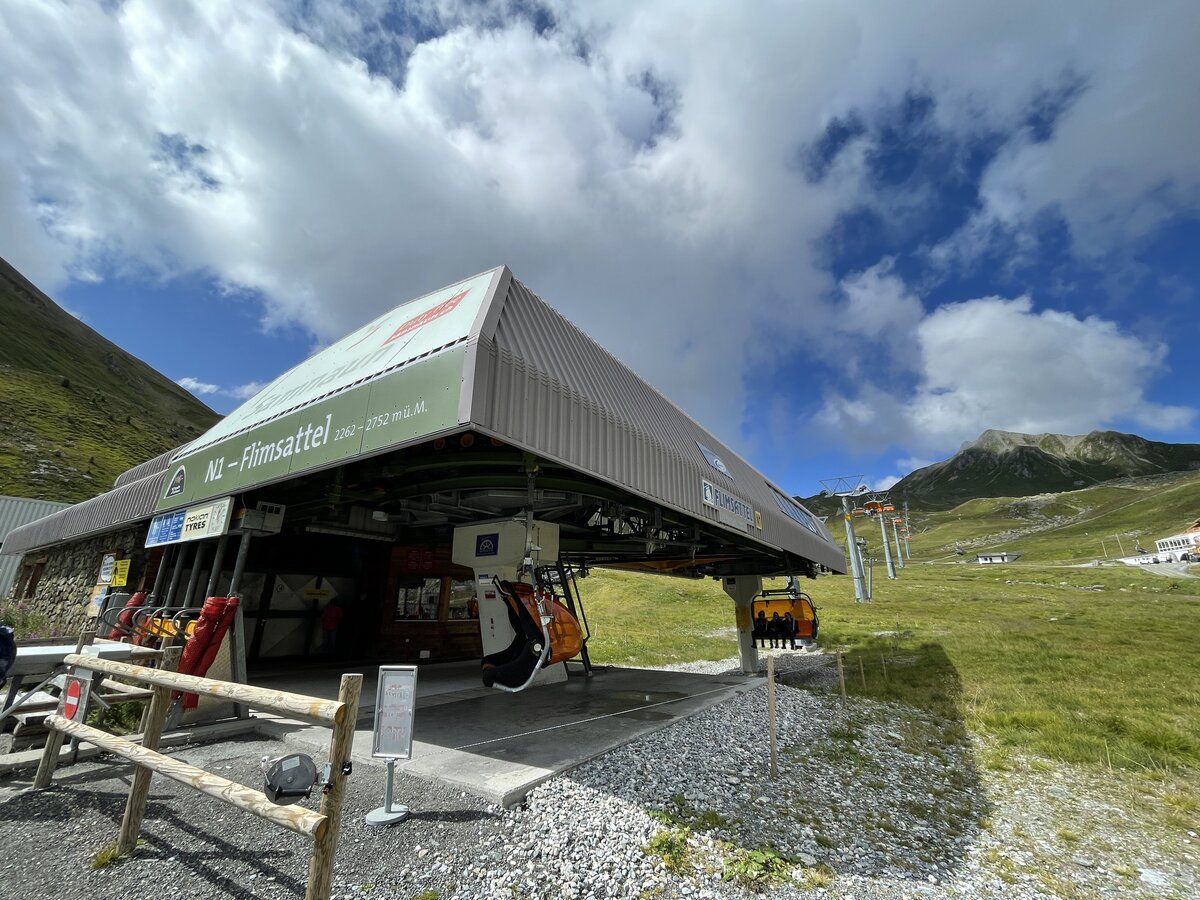 The Flimsattelbahn has a vertical rise of 490 m and a route distance of 2.727 m. It departs from the base station (2.265 m) and runs over 29 pillars up to an altitude of 2.755 m. The 186 chairs are equipped with weather protection bubbles. Constructed in 1994, this facility has a total capacity of 2.400 passengers/hour. 1,1 Mio. guests per winter season use this facility mainly on their way back to Idalp from Alp Trida. The rope has a diameter of 45mm.