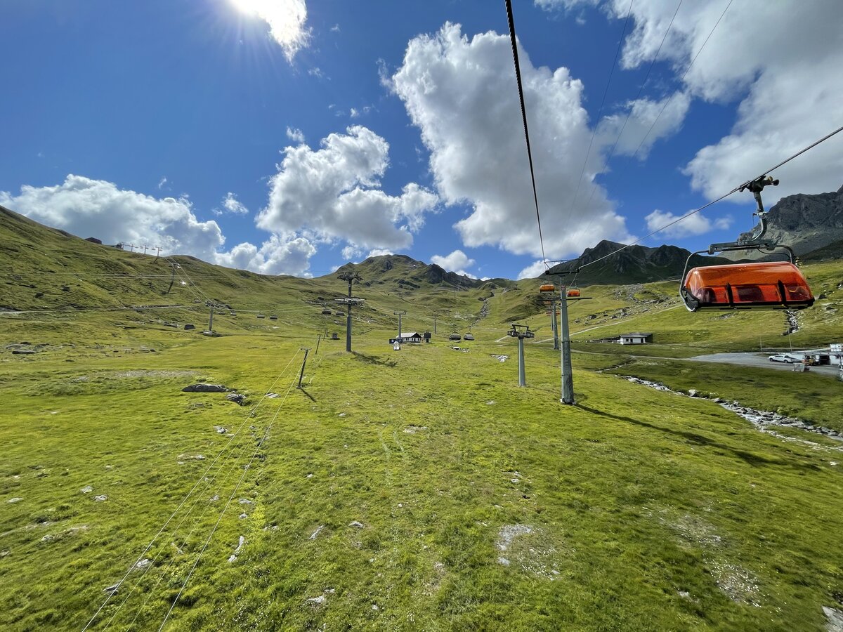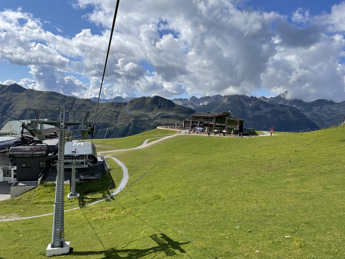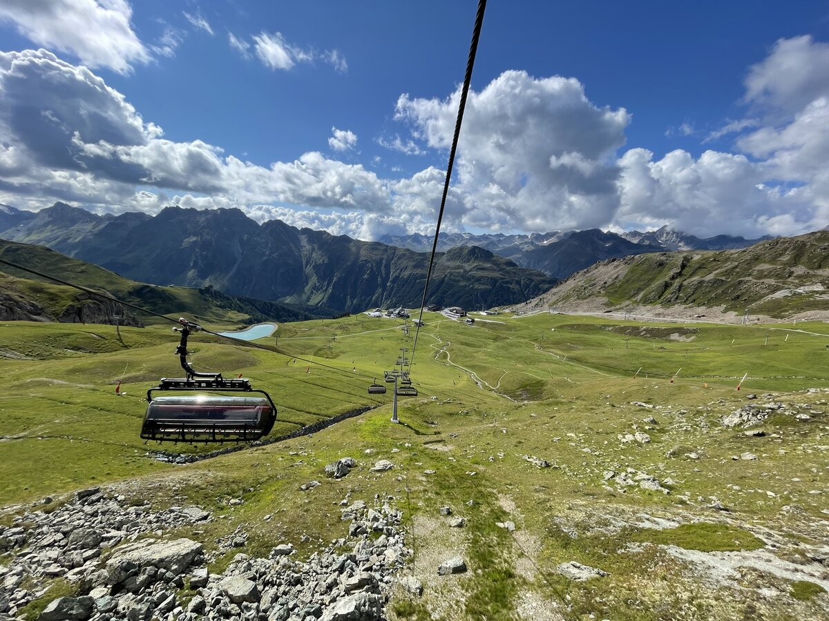 The detachable chair lift departs at 2,302 m above sea level (Idalp) and runs over 16 pillars to the Viderjoch, located at 2,756 m altitude. In winter, this facility is mainly used to support the Idjoch 8-person chair lift. The 87 chairs are equipped with comfortable seat covers, seat heating and weather protection bubbles. The facility has a total capacity of 3,200 m persons per hour. The Flimjochbahn operates from the mountain station, has a vertical rise of 454 m and a route distance of 1,797 m. Built in 2016, this lift facility boasts an average of 1,2 Mio. trips per winter.  season. Bike transport capacity: 120 bikes per hour