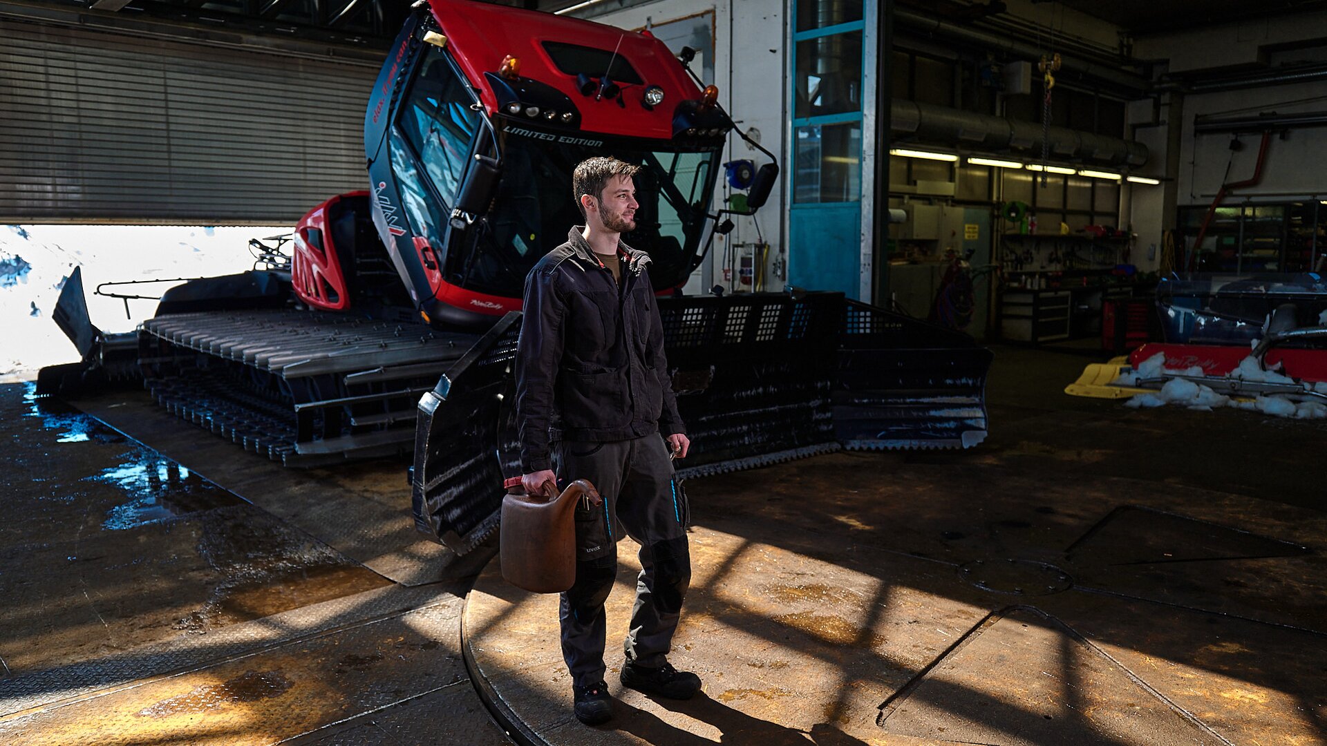 Michael feels that his work is varied and very exciting when it comes to the technical side – he repairs snow groomers and all kinds of machinery. He is very successful all round with his job at Silvrettaseilbahn AG. So back to the old workshop? He gives a small smile and a clear “NO”!