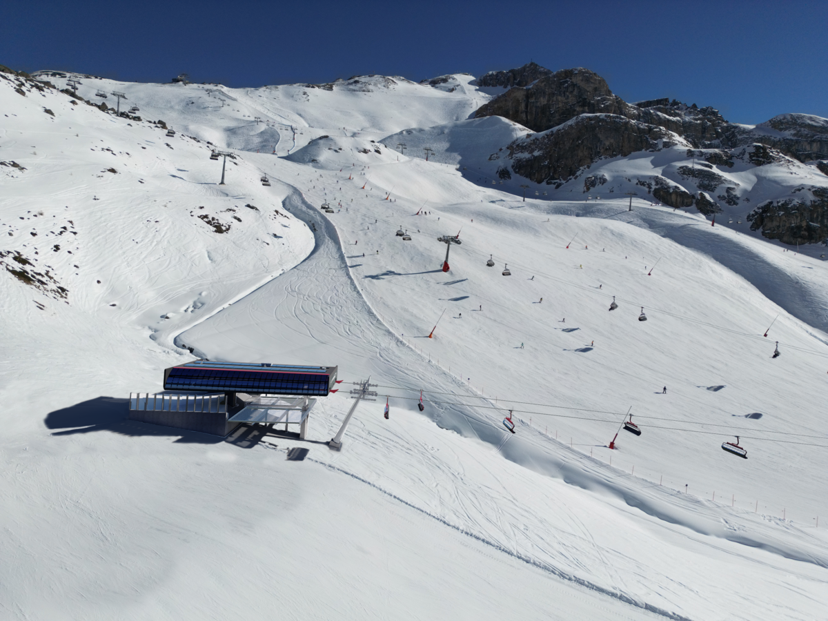 The detachable chair lift departs at 2,302 m above sea level (Idalp) and runs over 16 pillars to the Viderjoch, located at 2,756 m altitude. In winter, this facility is mainly used to support the Idjoch 8-person chair lift. The 87 chairs are equipped with comfortable seat covers, seat heating and weather protection bubbles. The facility has a total capacity of 3,200 m persons per hour. The Flimjochbahn operates from the mountain station, has a vertical rise of 454 m and a route distance of 1,797 m. Built in 2016, this lift facility boasts an average of 1,2 Mio. trips per winter. season. Bike transport capacity: 120 bikes per hour