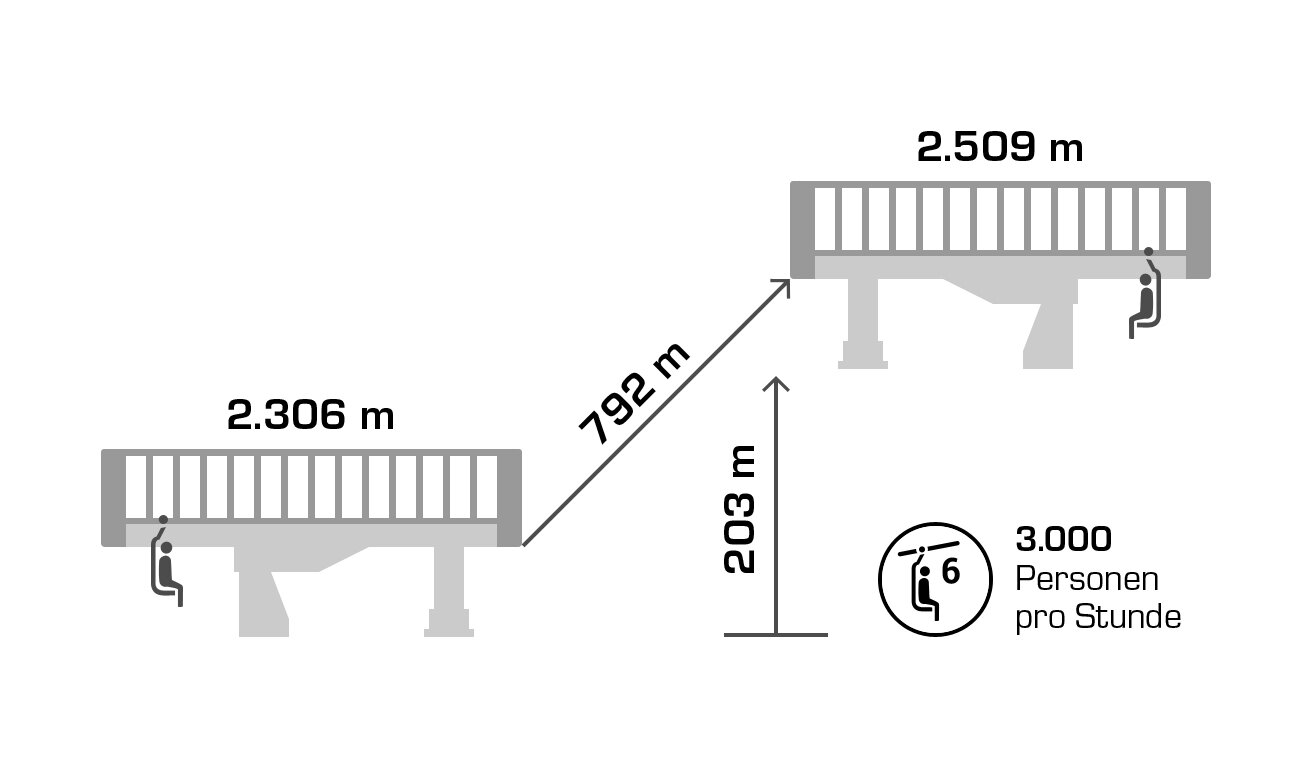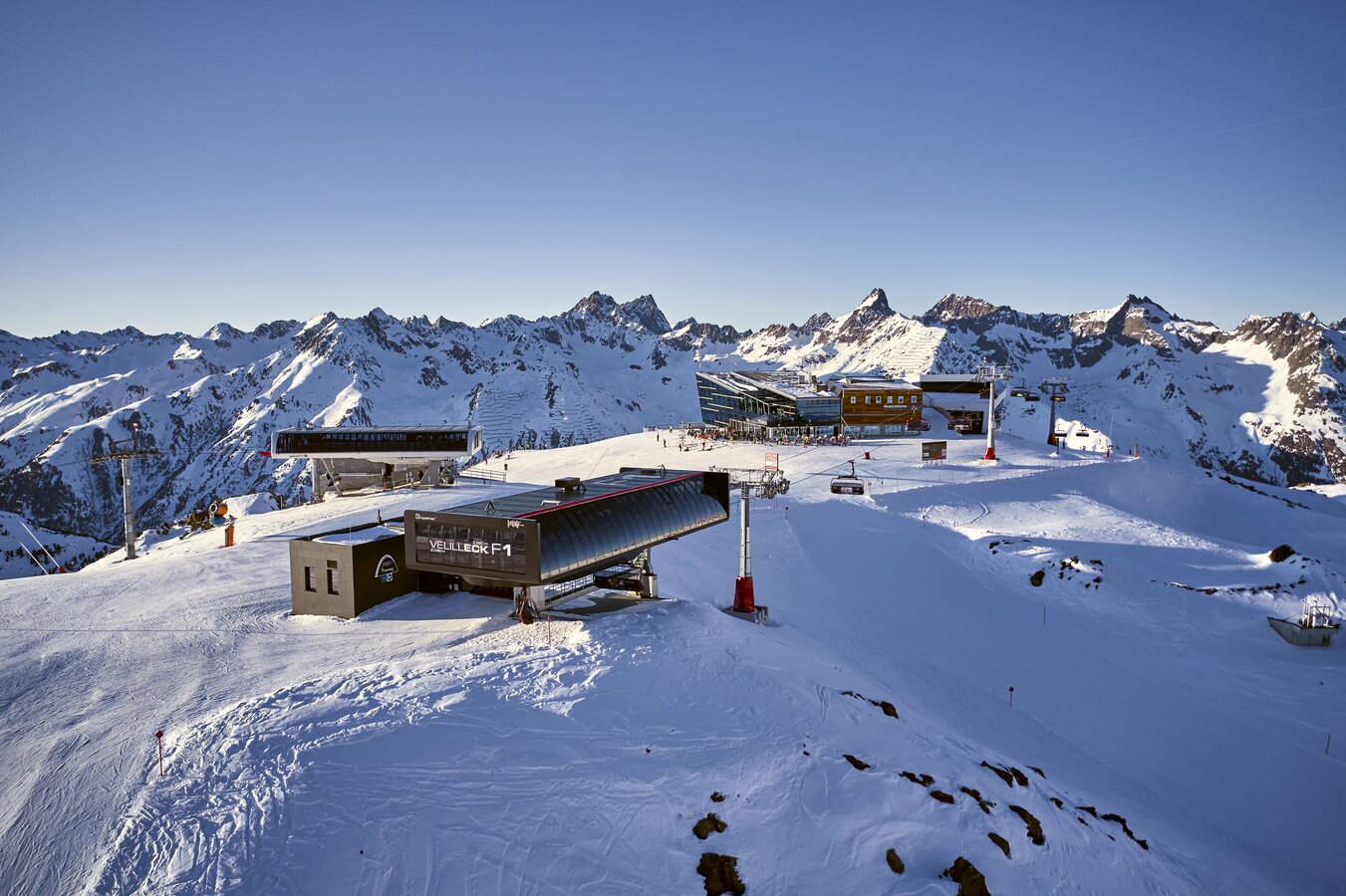 The Silvrettabahn was constructed in summer 1998. It boasts a vertical rise of 961 m, a route distance of 3.938 mand a maximum capacity of up to 3.440 persons/hour. The middle station is located at 1.683 m above sea level. 1,4 Mio. guests per winter season use the facility.