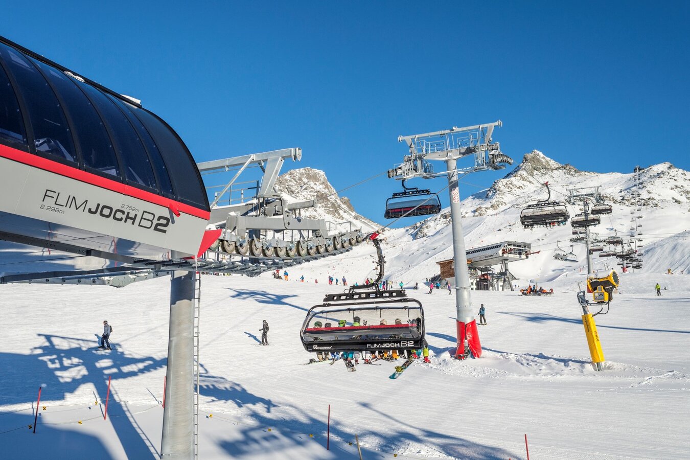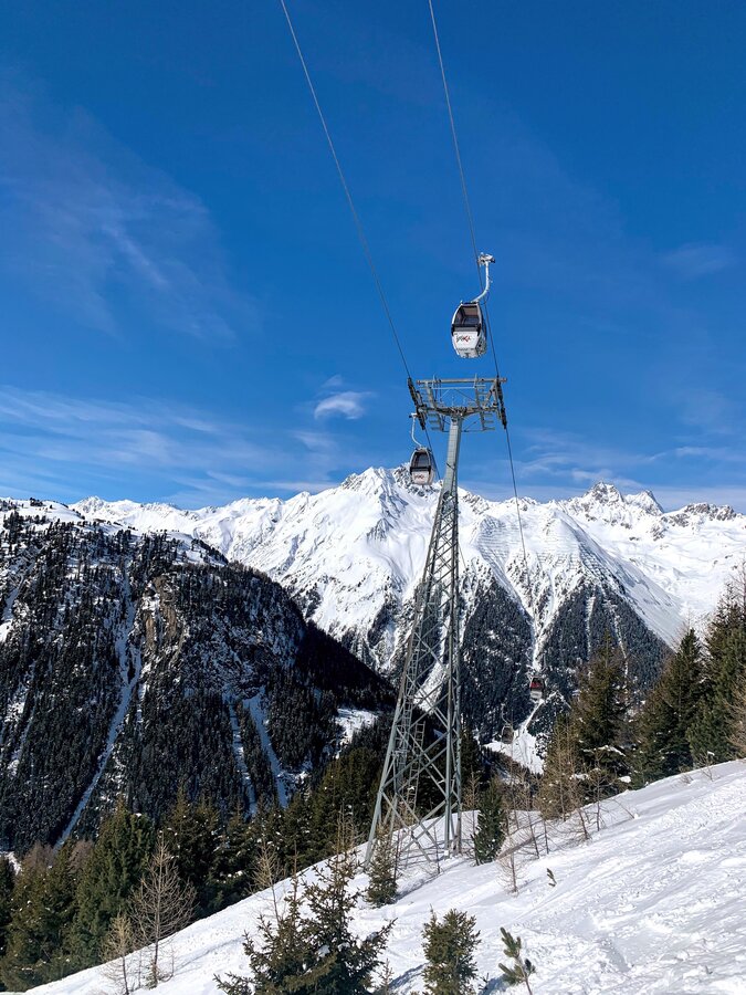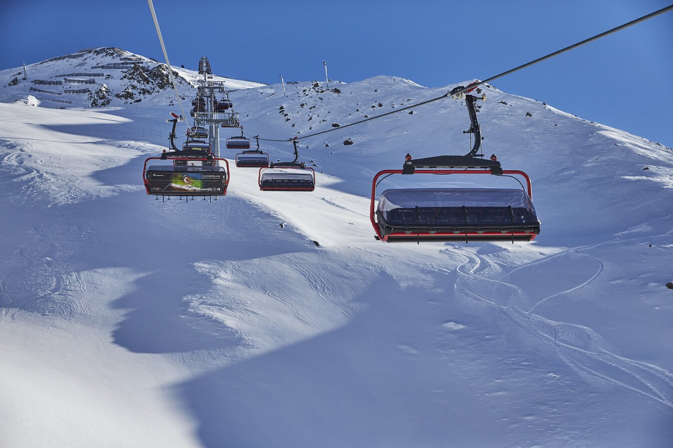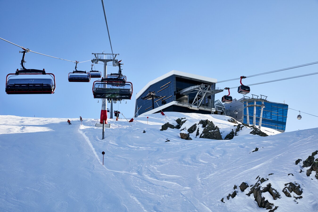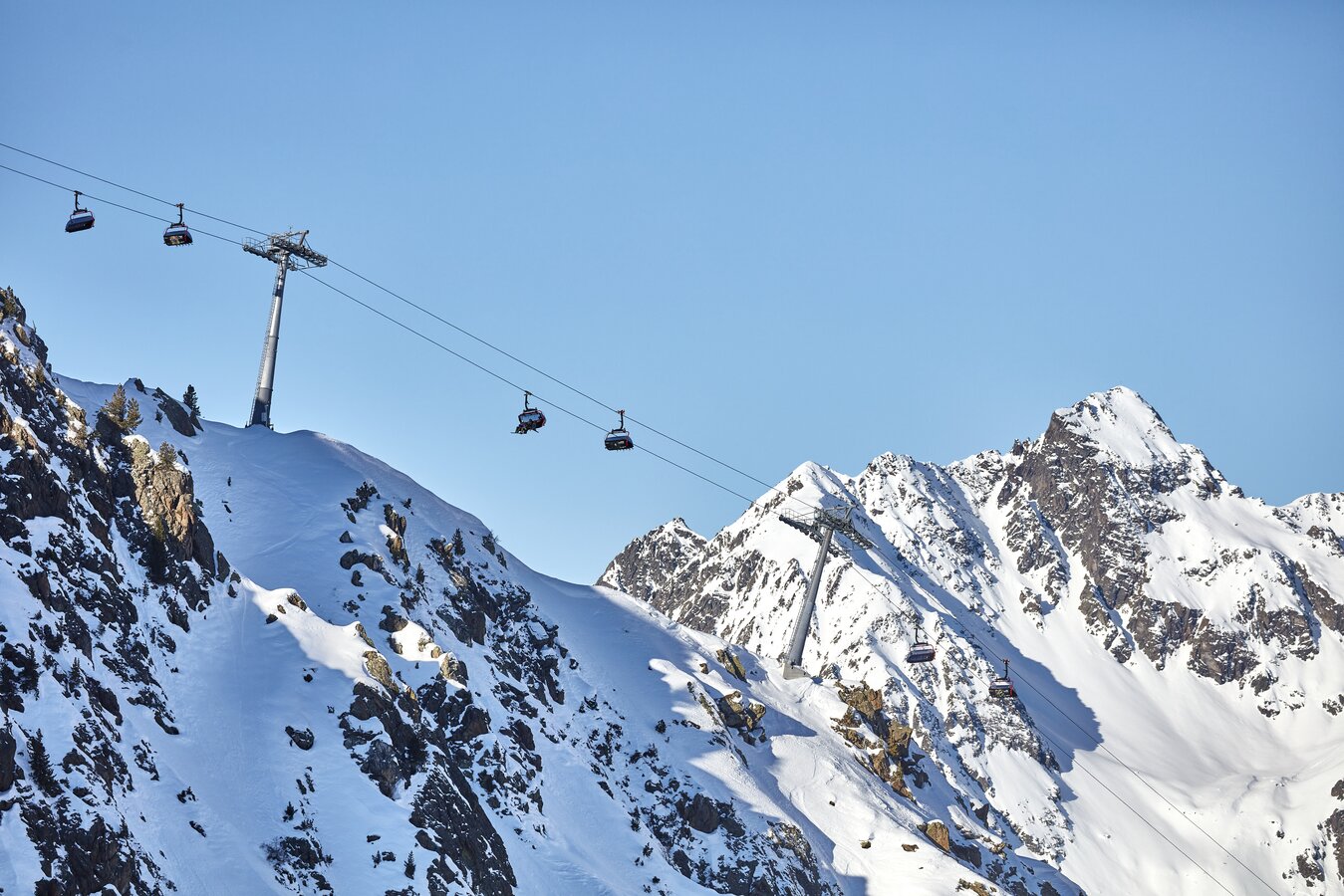 Its 24-passenger bicable ropeway design (funitel system) facilitates safe operation even at wind speeds of 100 km/h. 63 gondolas run from Ischgl to Idalp with a maximum line speed of up to 6 m/s.