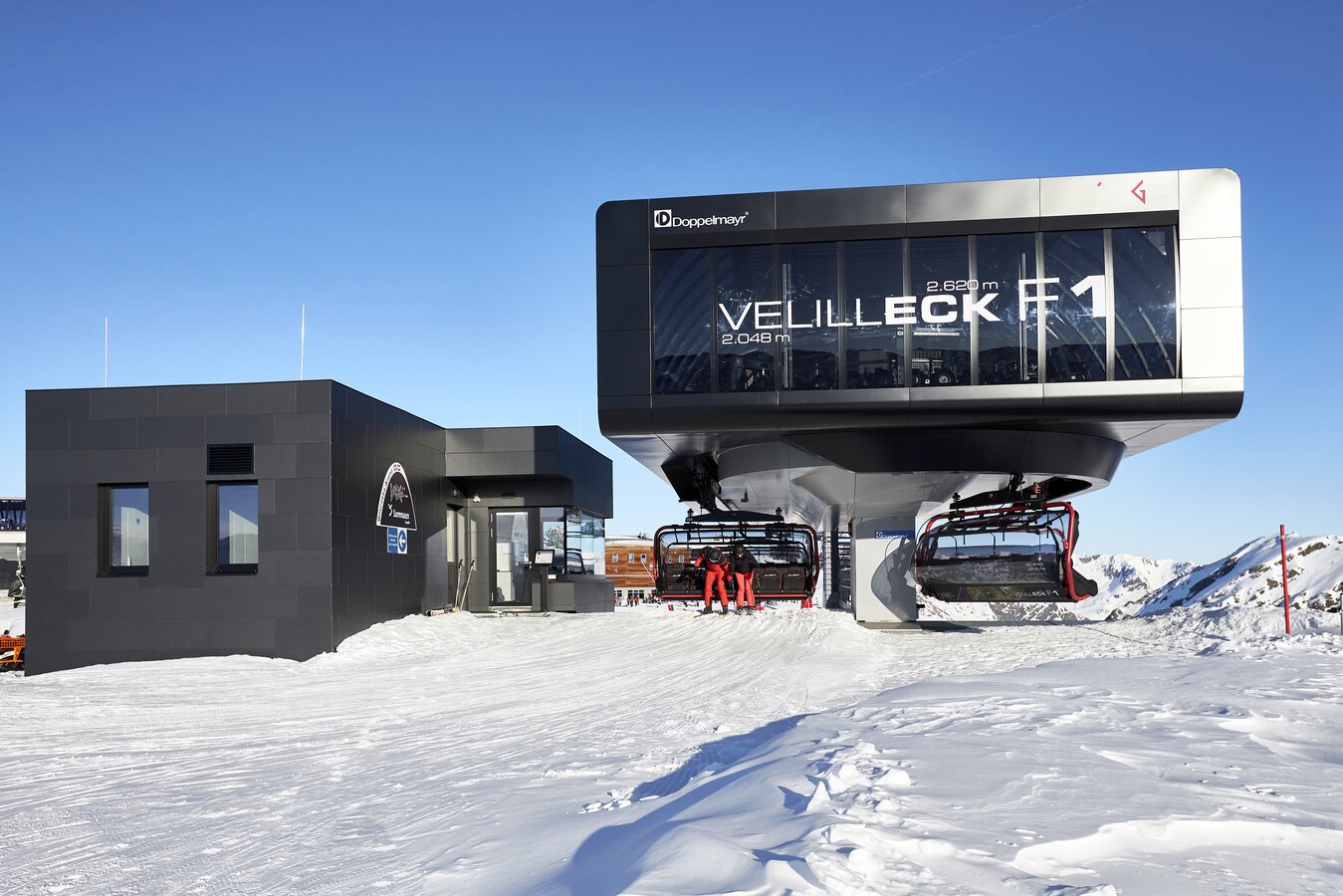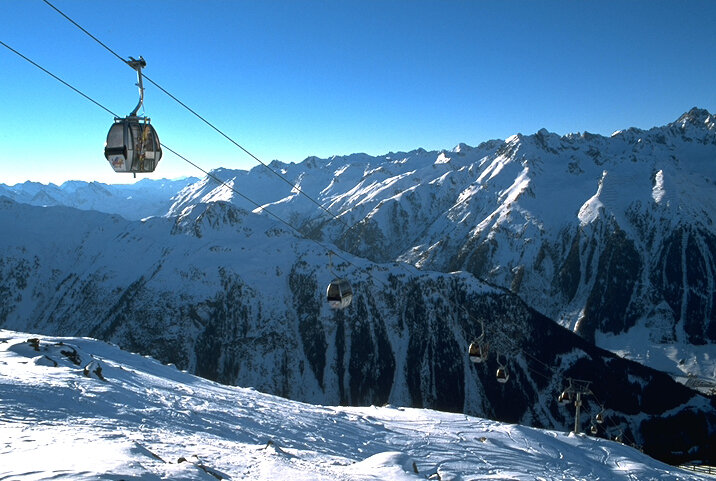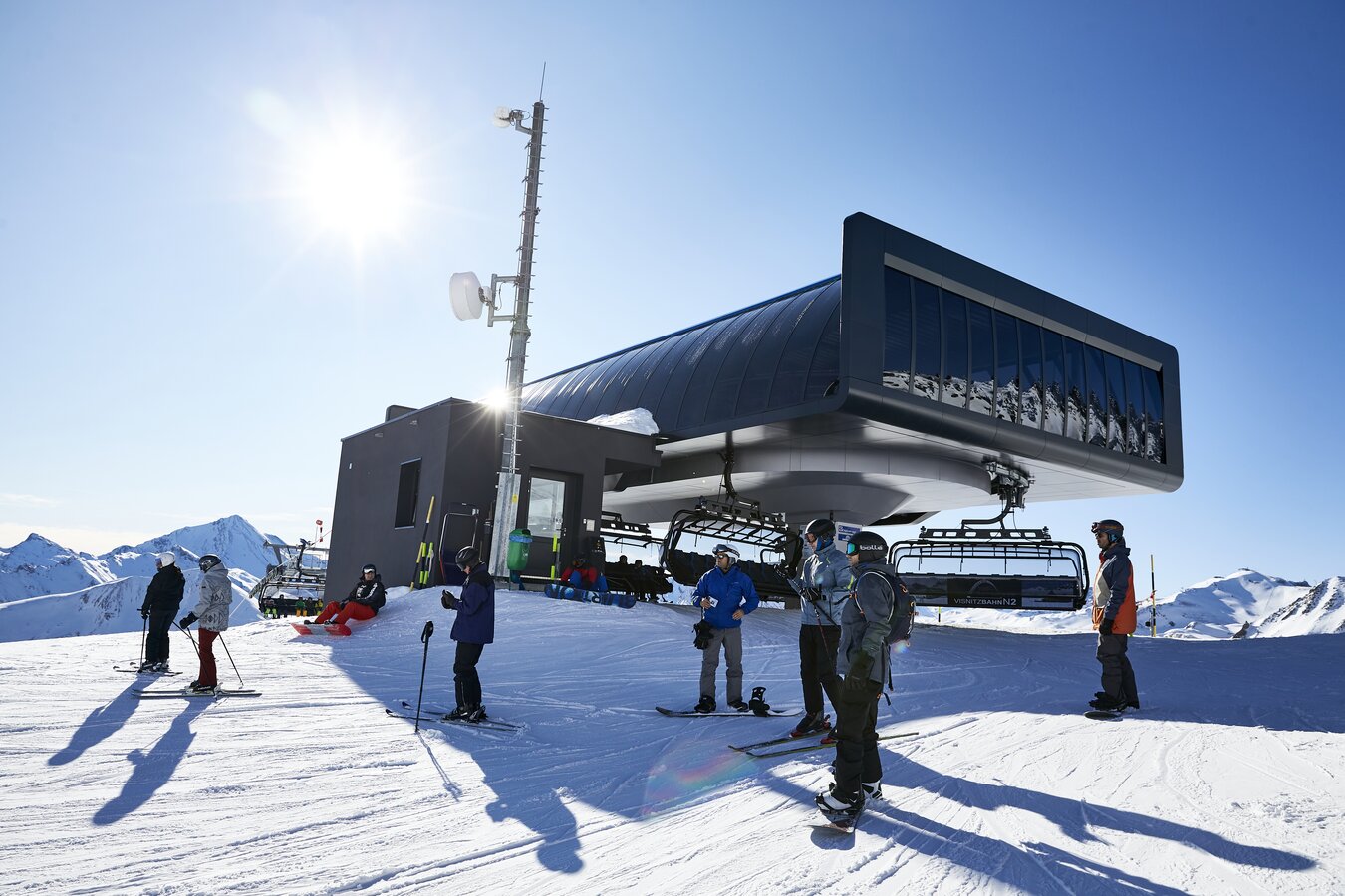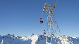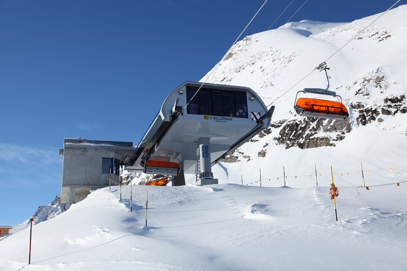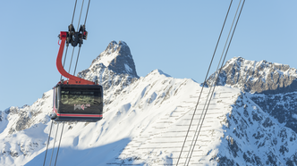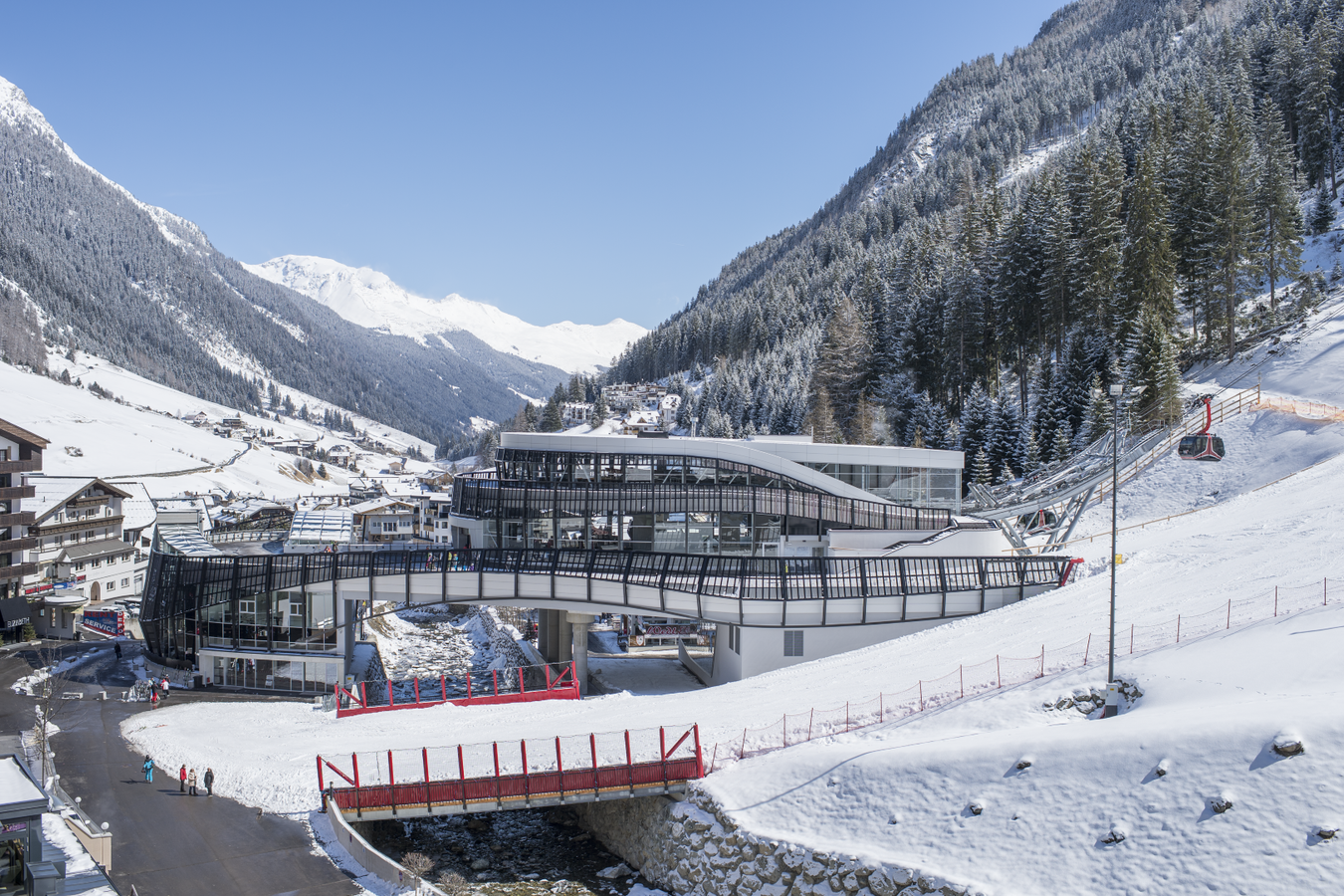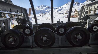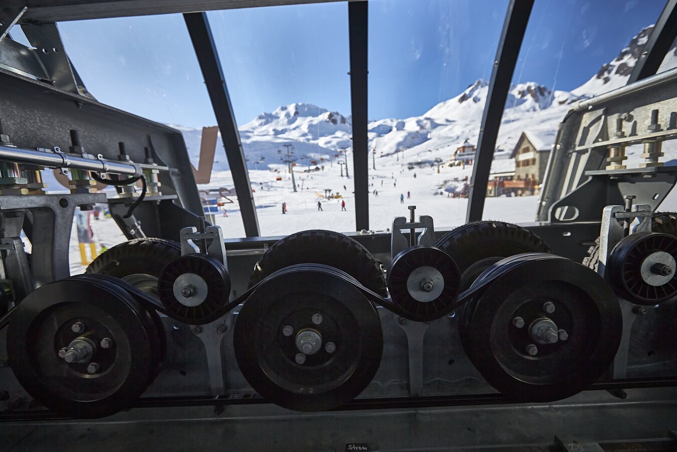 Its 24-passenger bicable ropeway design (funitel system) facilitates safe operation even at wind speeds of 100 km/h. 63 gondolas run from Ischgl to Idalp with a maximum line speed of up to 6 m/s.