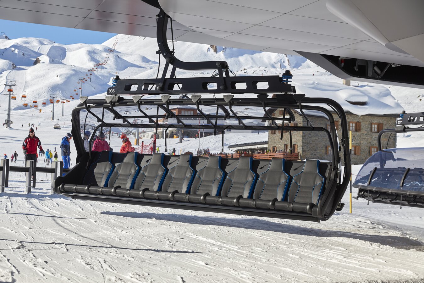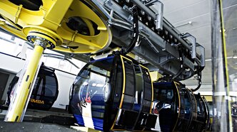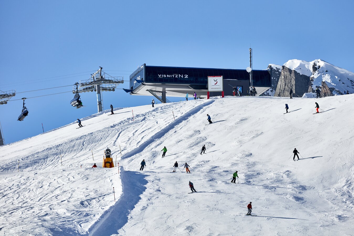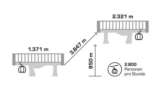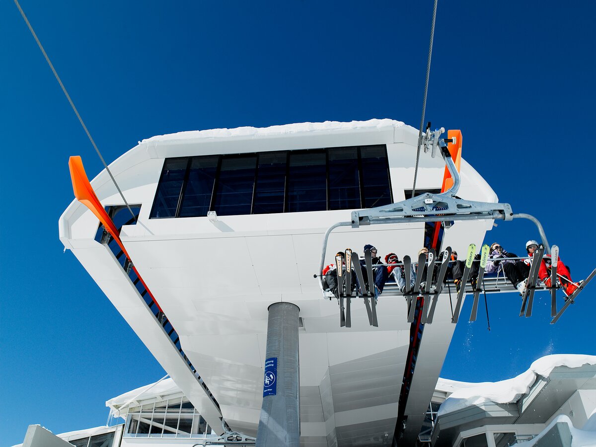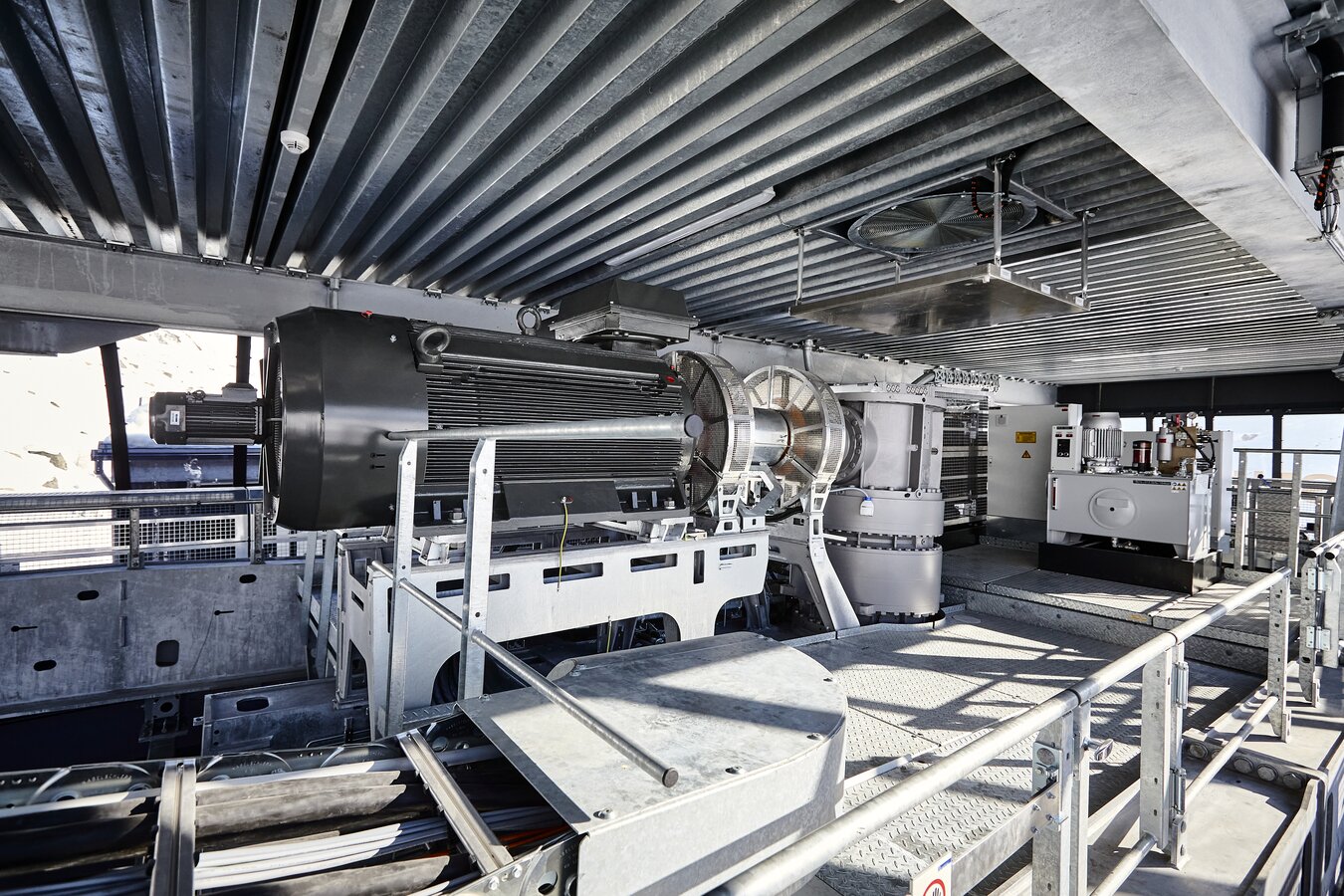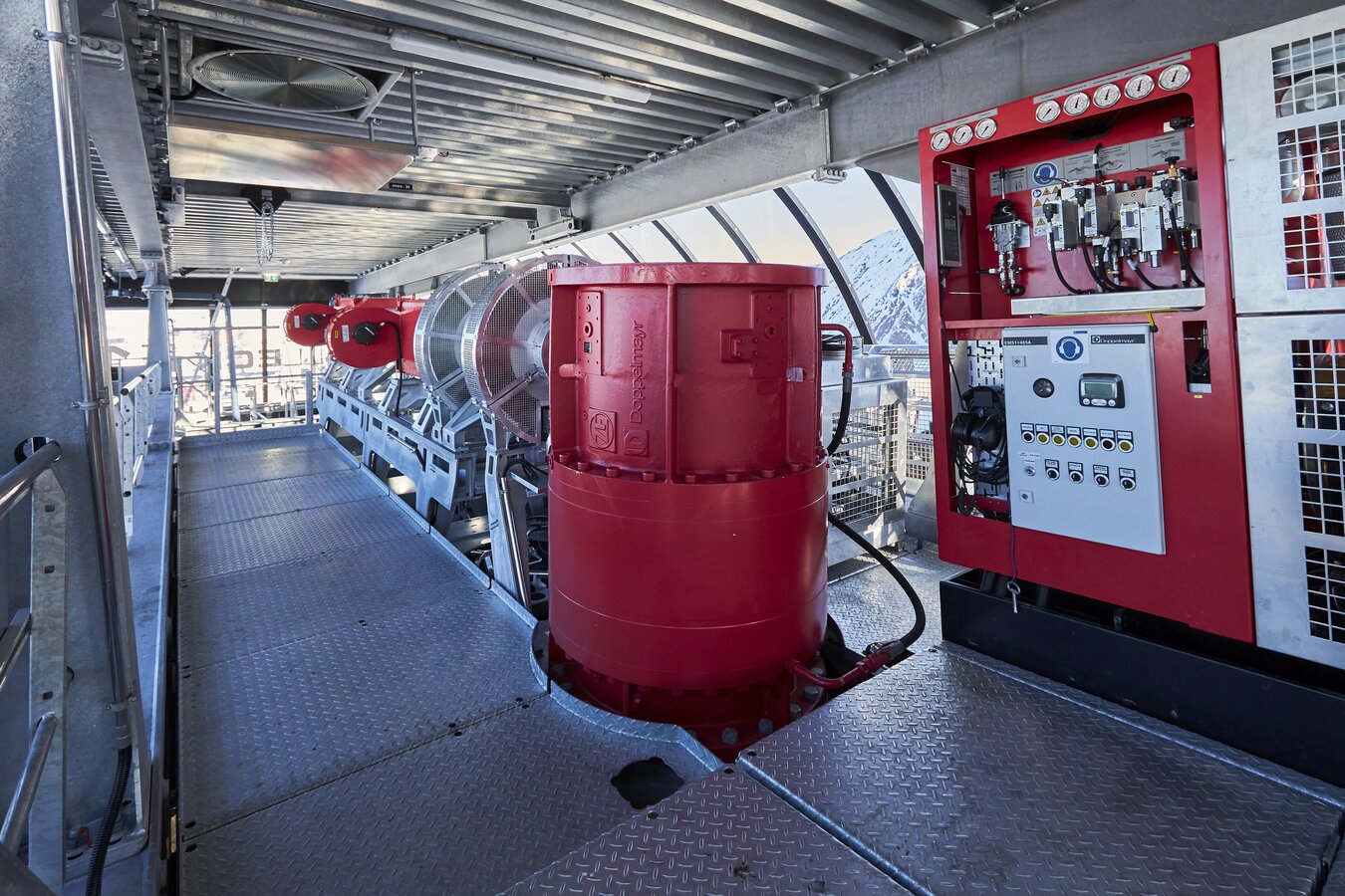 Its 24-passenger bicable ropeway design (funitel system) facilitates safe operation even at wind speeds of 100 km/h. 63 gondolas run from Ischgl to Idalp with a maximum line speed of up to 6 m/s.